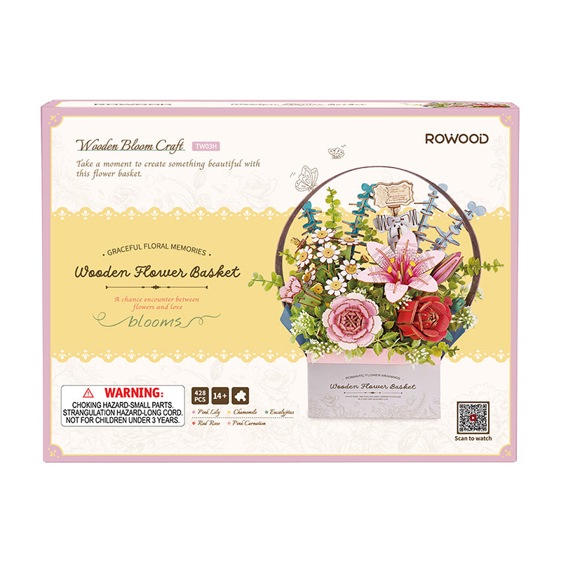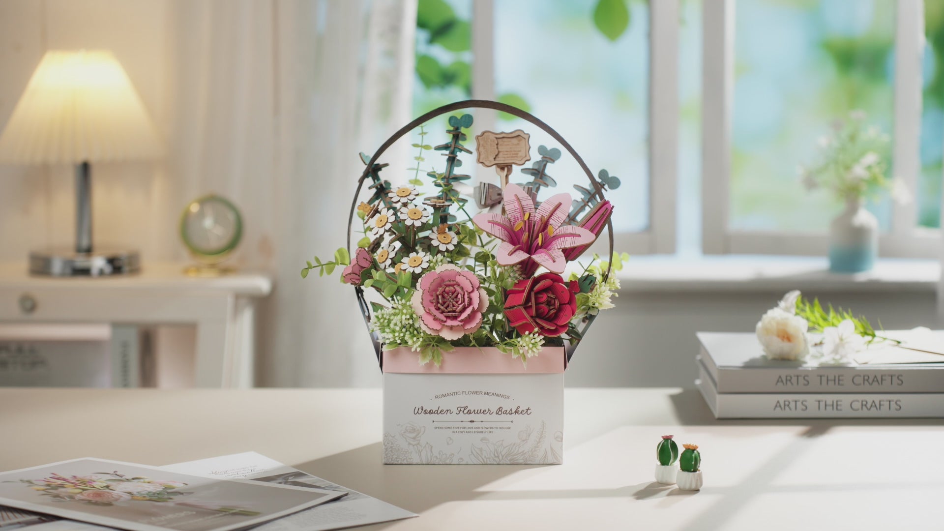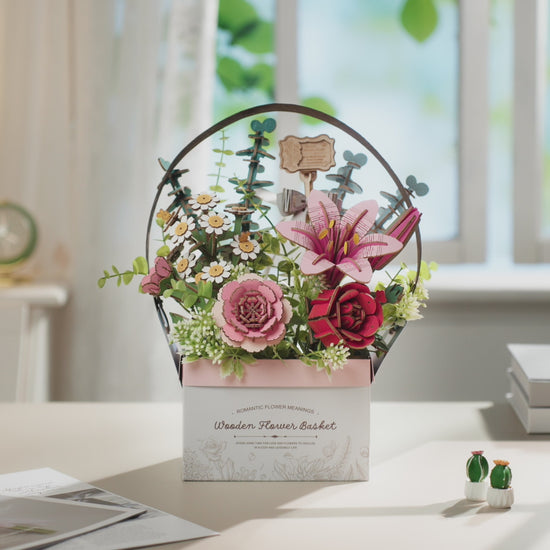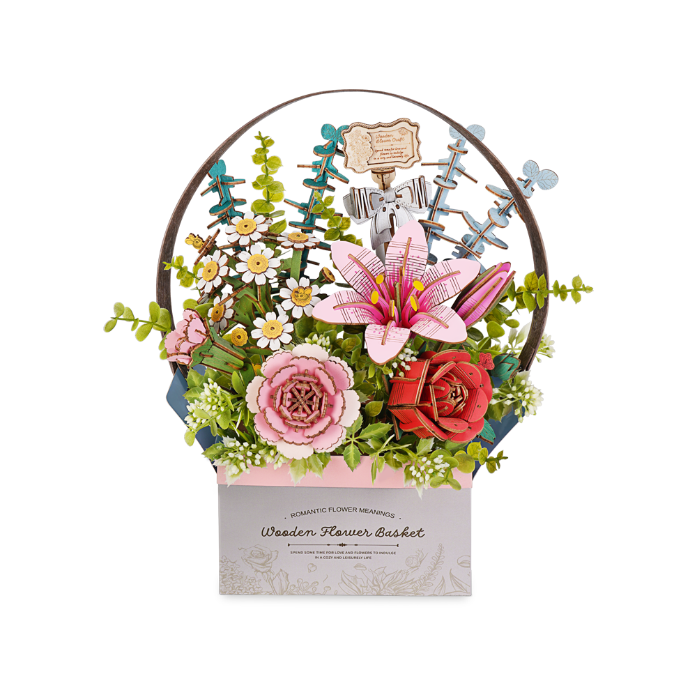 Skab dit eget mesterværk af en evighedsbuket med denne detaljerede Blomsterkurv. Sættet er en del af "Wooden Bloom Craft"-serien og giver dig mulighed for at bygge en komplet, farverig blomsteropsats, der aldrig visner og spreder glæde i dit hjem året rundt.